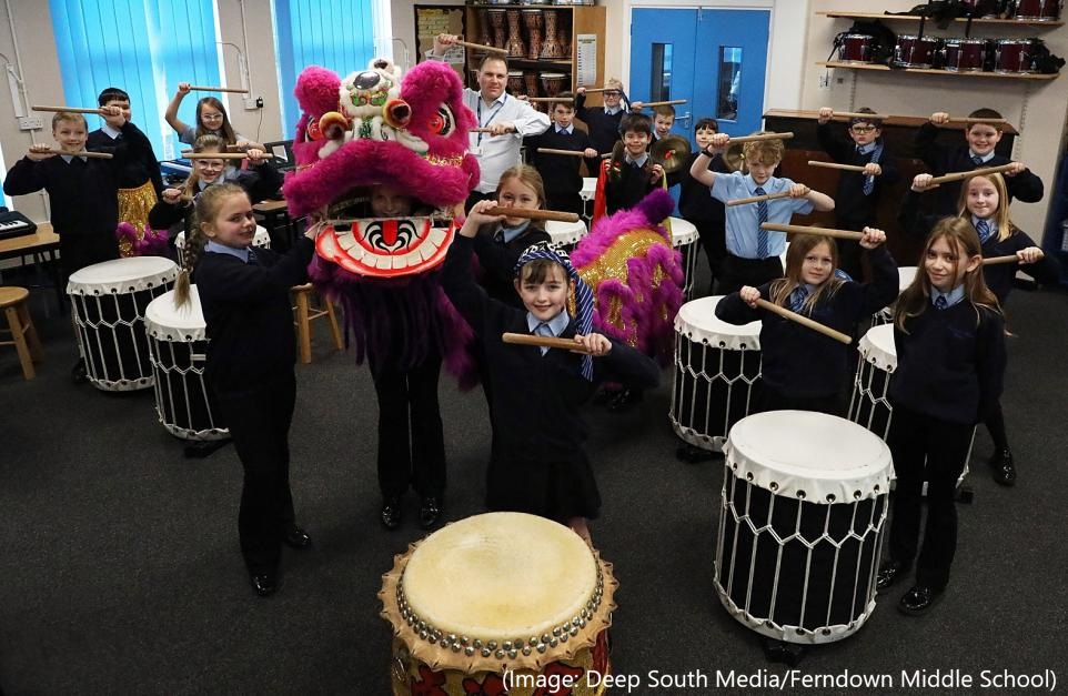 Adding even more colour to the experience, Tony Sivyer from the local performance group Dragon of the South lent the school Chinese lion dance costumes and drumming equipment, giving students the chance to explore an even wider range of musical traditions. https://www.bournemouthecho.co.uk/news/25870335.ferndown-middle-school-astounds-display-taiko-drums/